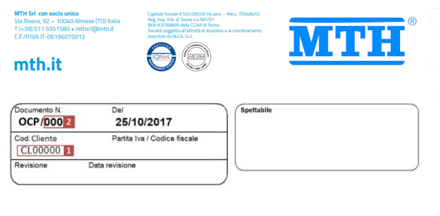 Esempio (Dati su conferma ordine) / Example (Data on order confirmation):